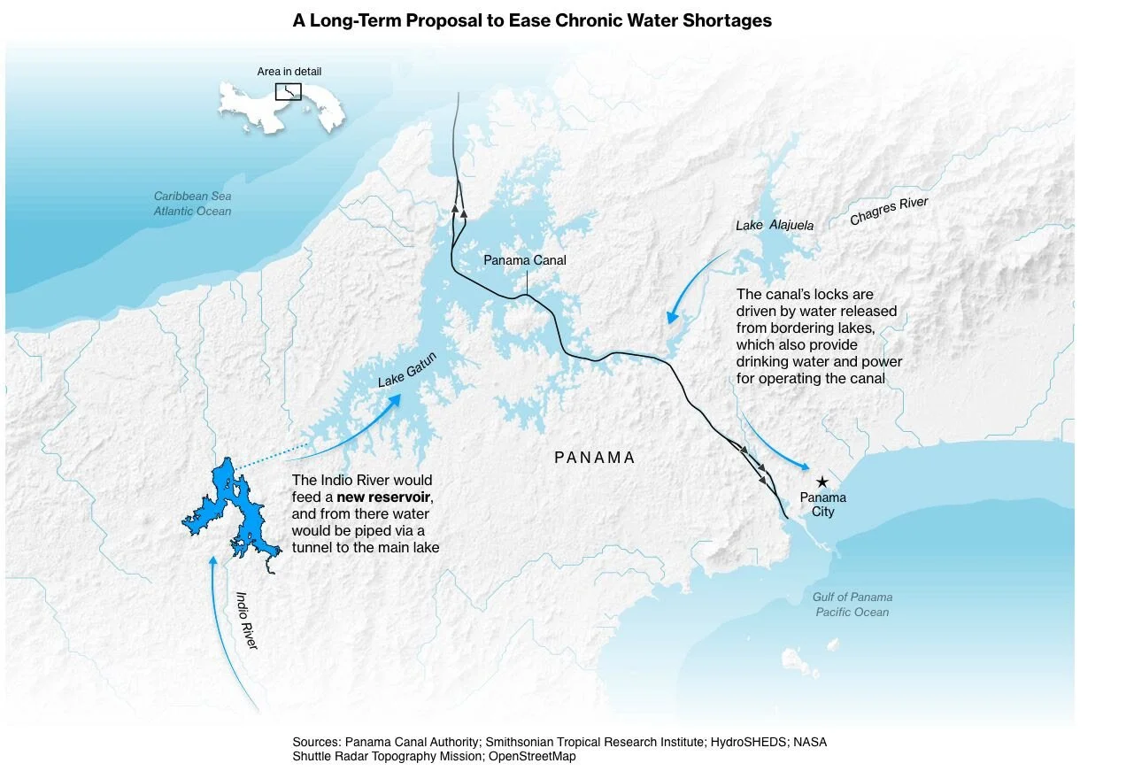 Parched conditions have crippled the Panama Canal, a waterway that handles $270 billion a year in global trade. And there are no easy solutions. The Panama Canal Authority is weighing potential fixes that include an artificial lake to pump water into the canal and cloud seeding to boost rainfall, but both options would take years to implement, if they’re even feasible. | Bloomberg ($)
