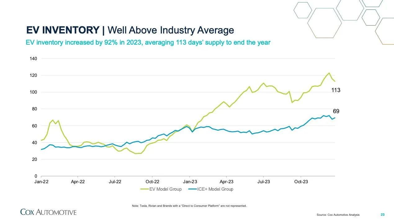 EV new vehicle inventory levels are much higher than ICE vehicles.